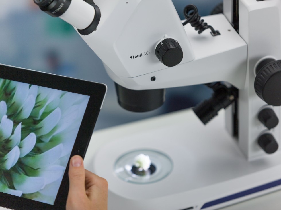 或者选用 Stemi 305 cam——显微镜机身内集成了 120 万像素的具有 WiFi 功能的相机和无线路由器。 它能够将几个显微镜的实时流图像数据输出到多台 iPad 上。 在“访问接入点”(Access point)模式下,每台 Stemi 305 cam 能够创建自己的无线局域网:集成的相机可以连接多达 6 台 iPad,并使用成像软件Labscope 显示实时图像。 为创建高品质数码教室,启用“添加至现有无线网”(Add to existing WLAN)模式并将多台 Stemi 305 cam 连至同一个网络中。
