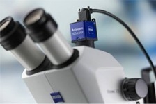 选用常规三目镜筒连接蔡司 Axiocam 显微镜相机。