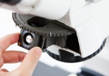 用于偏光显微观察的 Axio Lab.A1 配有中心定位式 4 位物镜转盘。