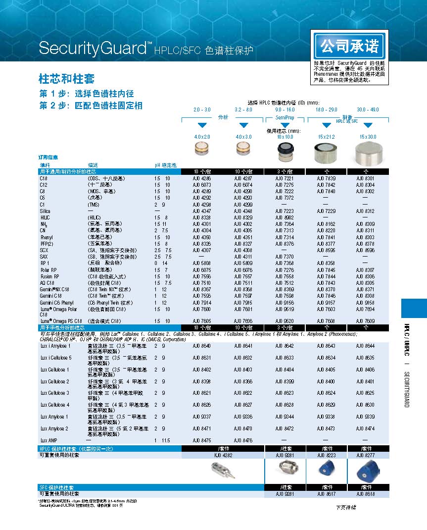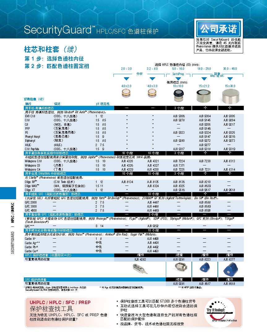UHPLC保护柱套/柱芯