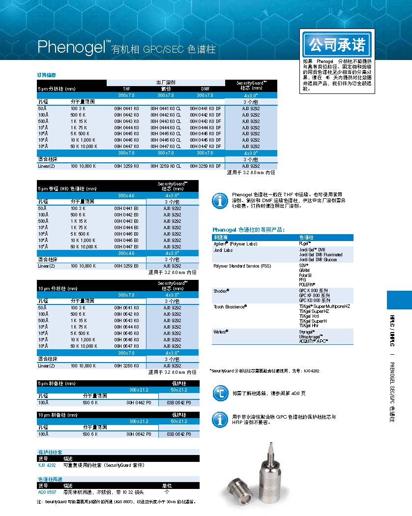 Phenogel™ 有机相 GPC/SEC 色谱柱