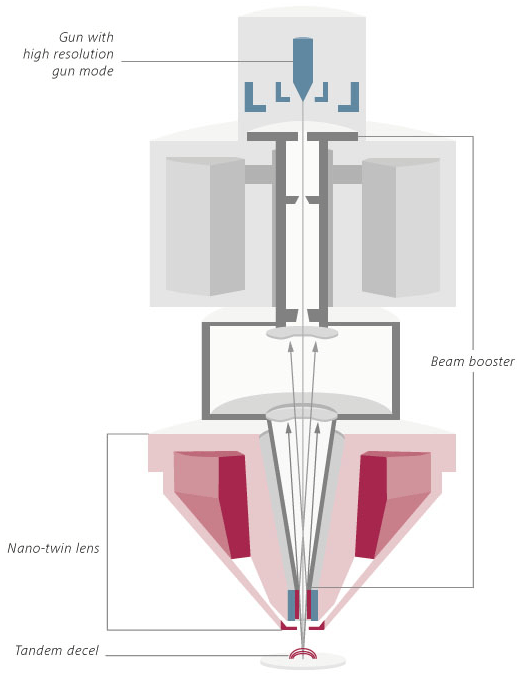 Tandem decel样品台减速技术,进一步提高对适用样品在低电压甚至极低电压下的分辨率: