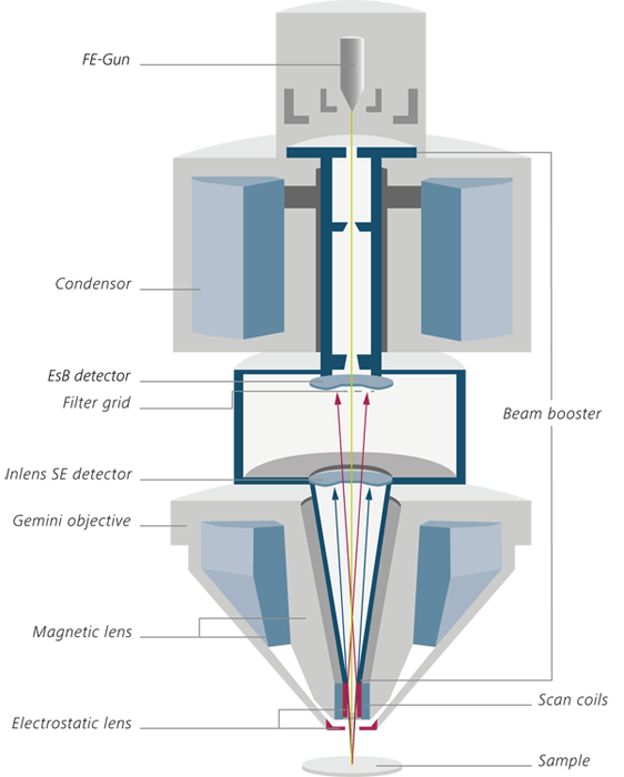 蔡司Gemini电子光学镜筒具有以下三个主要特点
