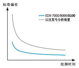 搭载高计数率SDD检测器的EDX-7000/8000/8100与以往型号相比,能够在更短的时间内保证分析精度。