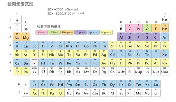 · 用EDX-7000/8100进行15P以下的轻元素分析时,需要真空检测单元或者氦气置换检测单元(均为选购件)。