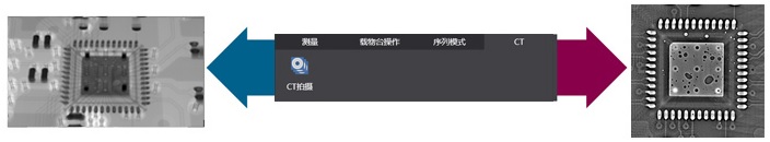从X射线透视观察到CT摄影只需点击切换图标。对于透视观察难以识别的立体构造物品,通过简单的操作就能立刻切换到断面观察。
