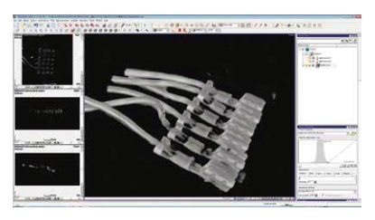 将使用X射线CT拍摄的截面图像,通过Volume lettering(VR)以三维形式显示的软件。具备基本的动画制作和简单的测量功能。